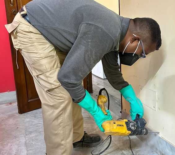 2. Drilling Process: Drilling of holes at regular intervals along walls, joints, and flooring to reach soil level.